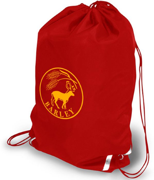 Junior Kit Bag in an extra strong water resistant material , rucksack style draw cords, internal pocket, safety reflectors on corners, peg hook and name card holder on the back.