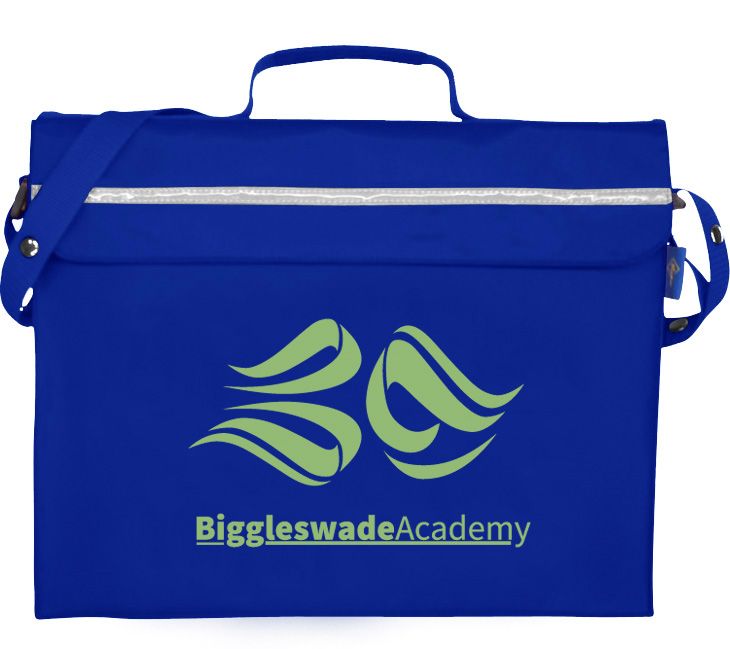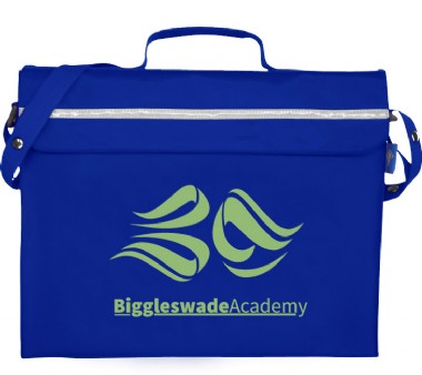 Primo Book Bag in a strong water resistant material with PVC lining, maximum capacity with side and bottom gussets, internal pencil pocket, shoulder strap, name card holder on the top, full length reflector strip and secure velcro fastening.