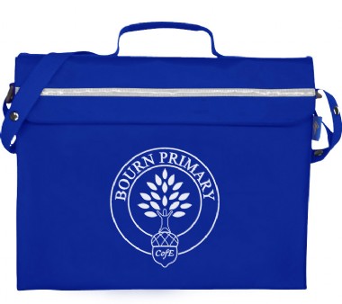Primo Book Bag in a strong water resistant material with PVC lining, maximum capacity with side and bottom gussets, internal pencil pocket, shoulder strap, name card holder on the top, full length reflector strip and secure velcro fastening.