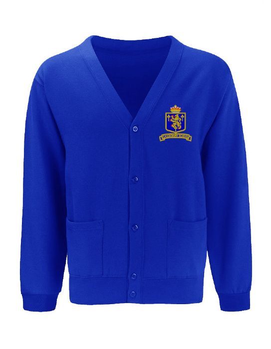 · School blue sweatshirt with school logo* or school blue cardigan with logo