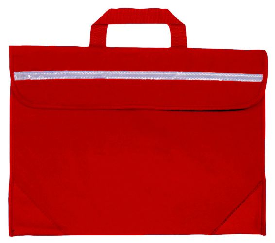 Duo Book Bag in a strong water resistant material with PVL lining. Features include a full length reflector strip, name card holder on the back, secure velcro fastening and reinforced PVC corners.
