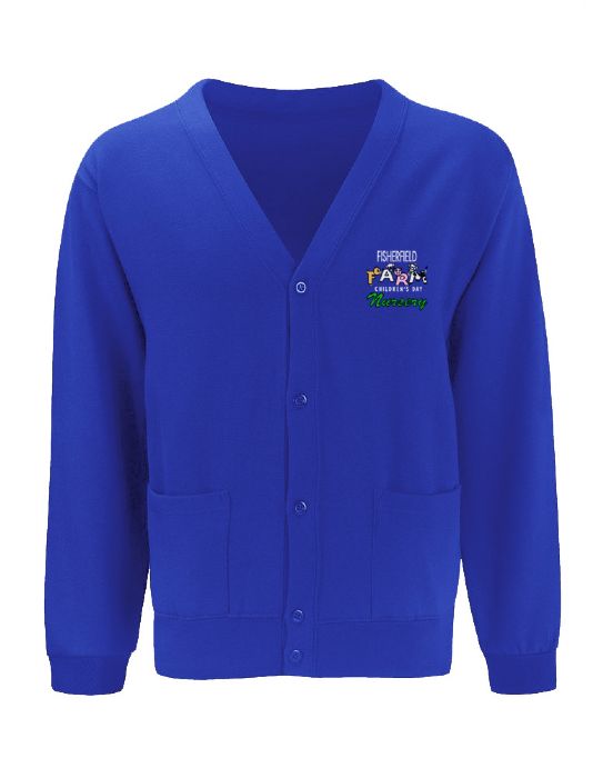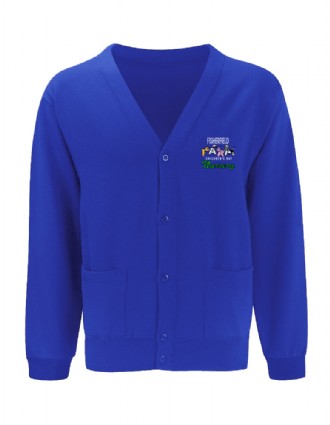 Sweat Cardigan with raglan sleeves, two front patch pockets and Lycra ribbed neck, cuffs and waistband.
