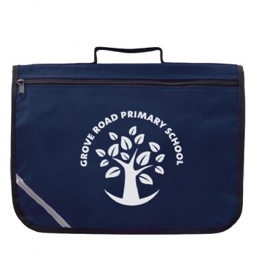 Excel Book Bag in a strong water resistant material with PVC lining and black binding on edges, maximum capacity with side and bottom gussets, external zip pocket, internal pocket, name card holder on the side, D rings at sides to attach a shoulder strap which can be bought separately.