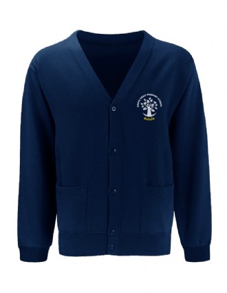 Sweat Cardigan with raglan sleeves, two front patch pockets and Lycra ribbed neck, cuffs and waistband.