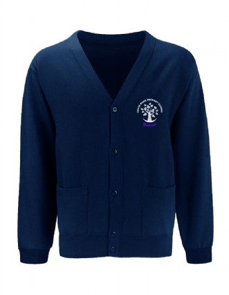 Sweat Cardigan with raglan sleeves, two front patch pockets and Lycra ribbed neck, cuffs and waistband.