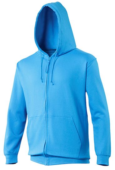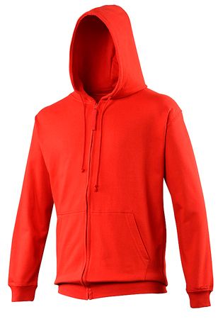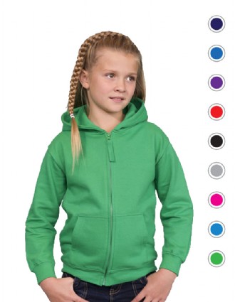 Full Zip Hoodie with two front pouch pockets, ribbed cufs and hem, double fabric hood, no drawcords on childrens sizes to comply with EU regulation