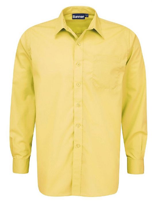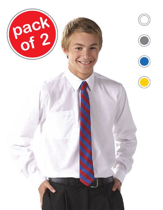 Boys Long Sleeve Shirt Twin Pack with button to neck tie collar. Easy care non iron