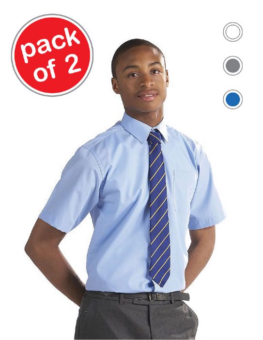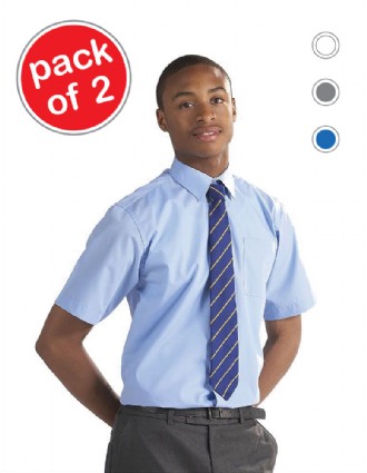 Boys Short Sleeve Shirt Twin Pack with button to neck tie collar. Easy care non iron