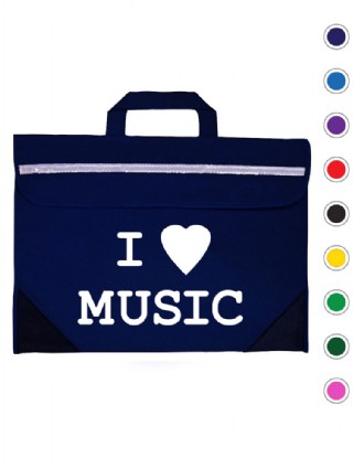 Duo Bag printed with I Love Music Logo. A strong water resistant material with PVL lining. Features include a full length reflector strip, name card holder on the back, secure velcro fastening and reinforced PVC corners. Dimensions 38 x 28 cm