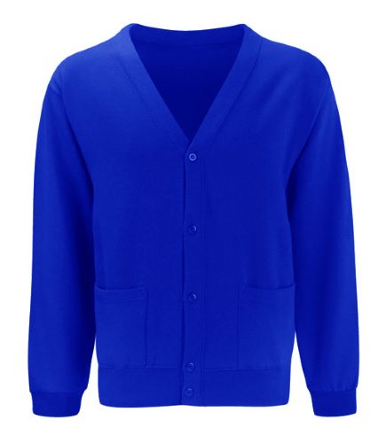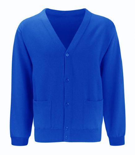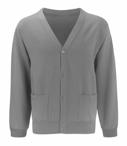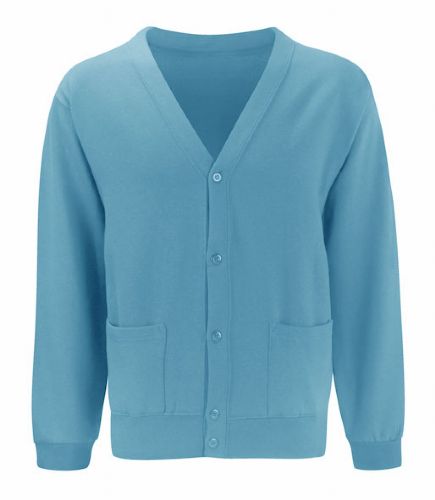 Sweat Cardigan with raglan sleeves, two front patch pockets and Lycra ribbed neck, cuffs and waistband.