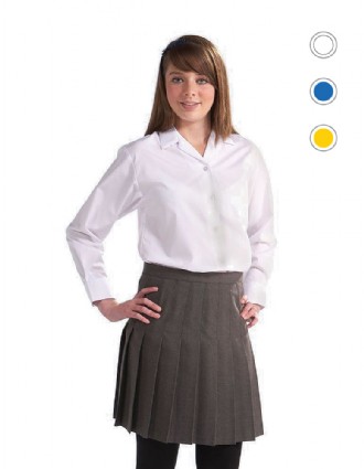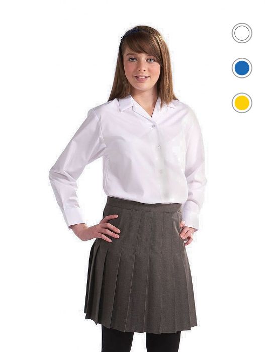 Girls Long Sleeve Blouse Twin Pack with revere collar and side vents. Easy care non iron