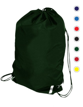 Junior Kit Bag in an extra strong water resistant material , rucksack style draw cords, internal pocket, safety reflectors on corners, peg hook and name card holder on the back.