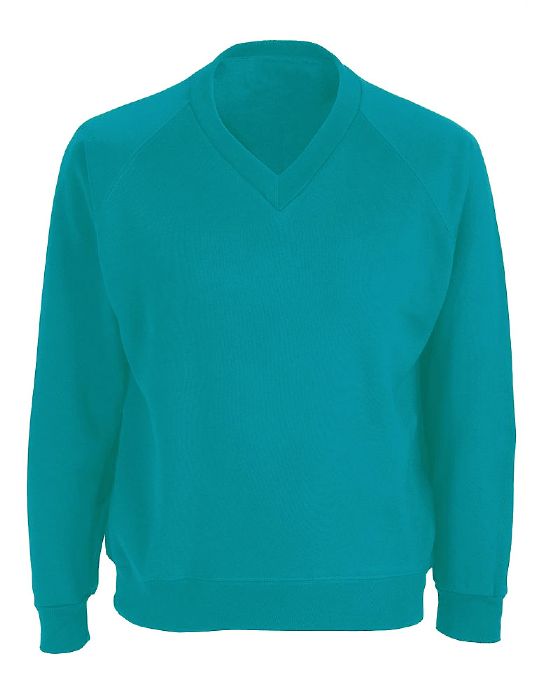 V-Neck Sweatshirt with raglan sleeves, ideal to wear with a polo shirt, open neck shirt or shirt & tie.