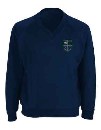 V-Neck Sweatshirt with set-in sleeves, Lycra ribbed neck cuffs and welt, neck tape and name label in childrens sizes