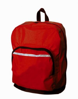 Primary Rucksack in a strong, lightweight water resistant material, features include safety reflectors back and front, mesh side pocket/bottle holder, front pocket with internal pen holders ,name card holder on the back and padded adjustable shoulder straps.