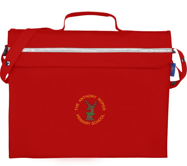 Primo Book Bag in a strong water resistant material with PVC lining, maximum capacity with side and bottom gussets, internal pencil pocket, shoulder strap, name card holder on the top, full length reflector strip and secure velcro fastening.
