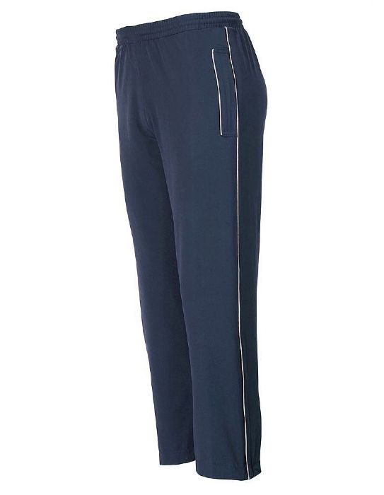 Tracksuit Pants with reflective piping for hi-visibility, long zip and henned boot access, elasticated waist, two front zipped welt pockets and one back pocket, part mesh lined