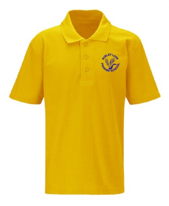 A plain white t-shirt for PE / royal blue gym bag printed with our yellow logo
