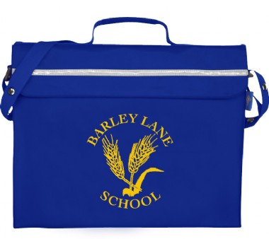 Primo Book Bag in a strong water resistant material with PVC lining, maximum capacity with side and bottom gussets, internal pencil pocket, shoulder strap, name card holder on the top, full length reflector strip and secure velcro fastening.