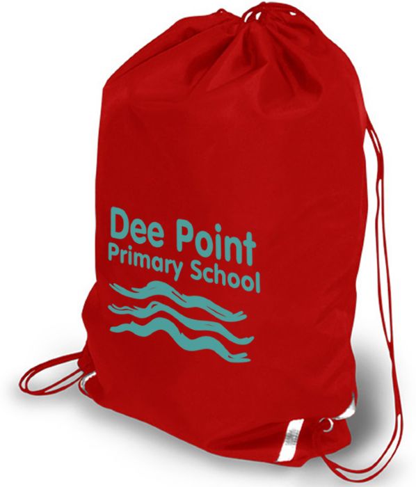 Junior Kit Bag in an extra strong water resistant material , rucksack style draw cords, internal pocket, safety reflectors on corners, peg hook and name card holder on the back.