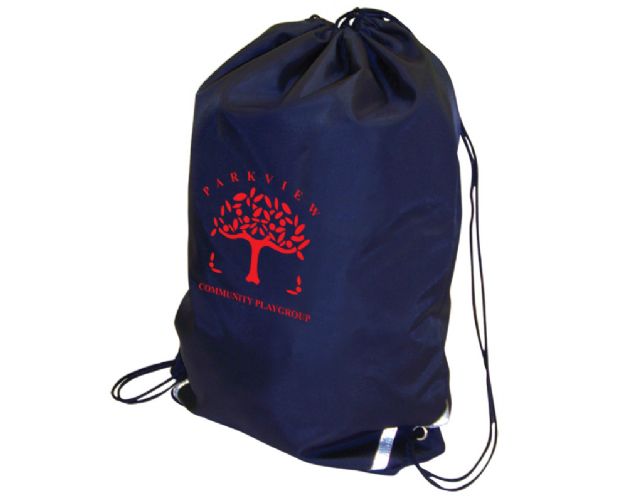 Junior Kit Bag in an extra strong water resistant material , rucksack style draw cords, internal pocket, safety reflectors on corners, peg hook and name card holder on the back.