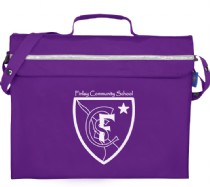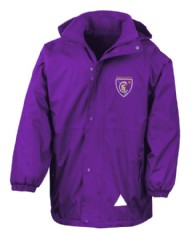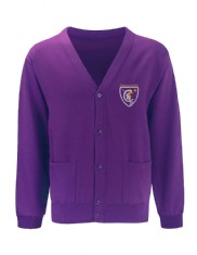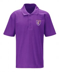 School uniform consists of purple sweatshirt or cardigan, white polo shirt, black/grey