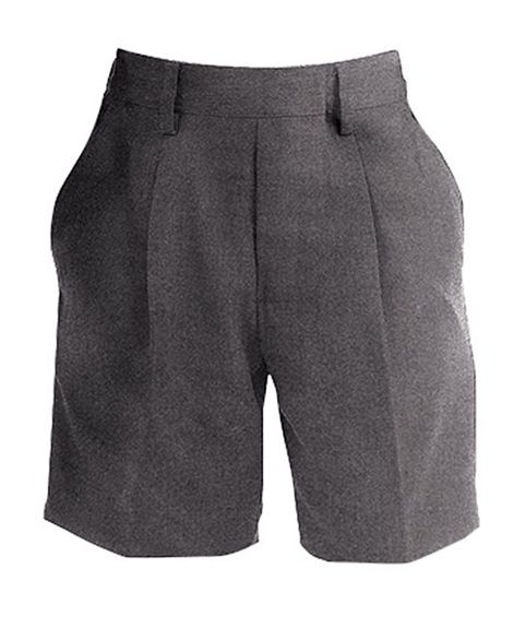 Boys School Shorts with elasticated back waist, long leg style, pleated front and belt loops. Stain resistant finish