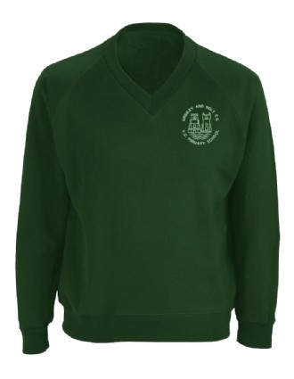 Grimley School green V-neck sweatshirt cardigan with logo or V-neck sweatshirt with logo