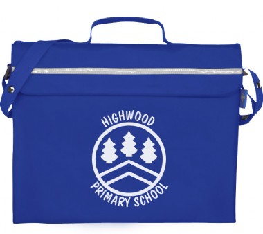 Primo Book Bag in a strong water resistant material with PVC lining, maximum capacity with side and bottom gussets, internal pencil pocket, shoulder strap, name card holder on the top, full length reflector strip and secure velcro fastening.