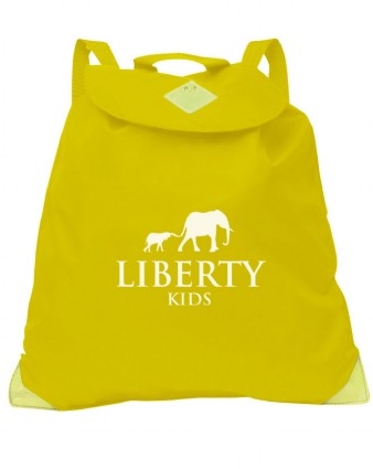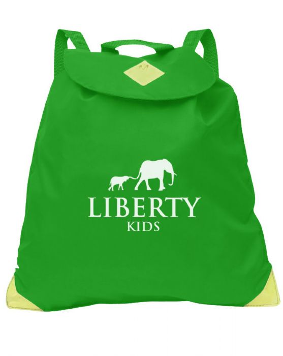 Infant Backpack in a strong water resistant material, features include secure easy to open velcro fasting, strong drawcord, safety reflectors, internal pocket, name card holder on the back and adjustable back straps.