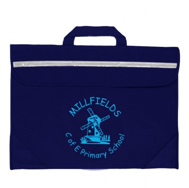 Duo Book Bag in a strong water resistant material with PVL lining. Features include a full length reflector strip, name card holder on the back, secure velcro fastening and reinforced PVC corners.