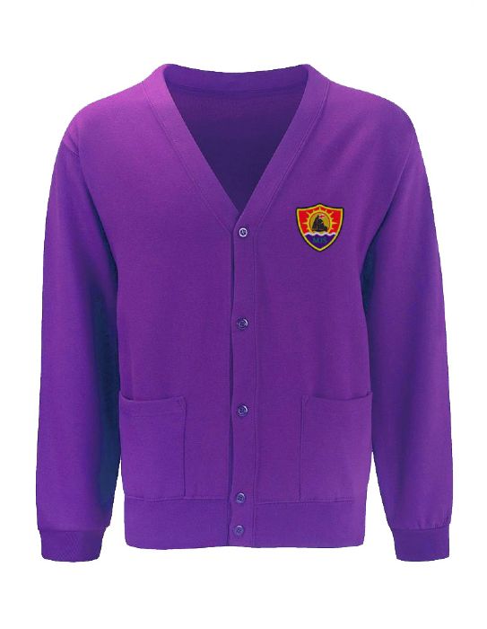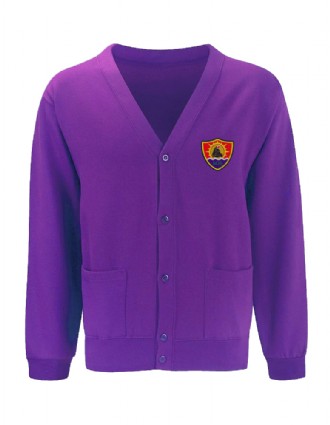 purple cardigan, available from school office