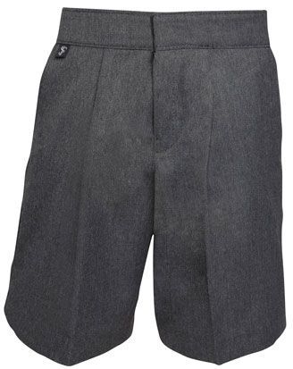 Boys School Shorts with half elasticated waist and hook fastening, front pleats, half lined and side pockets