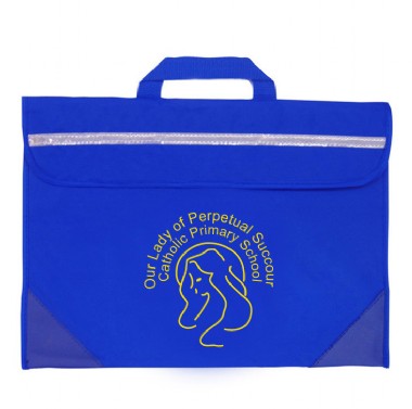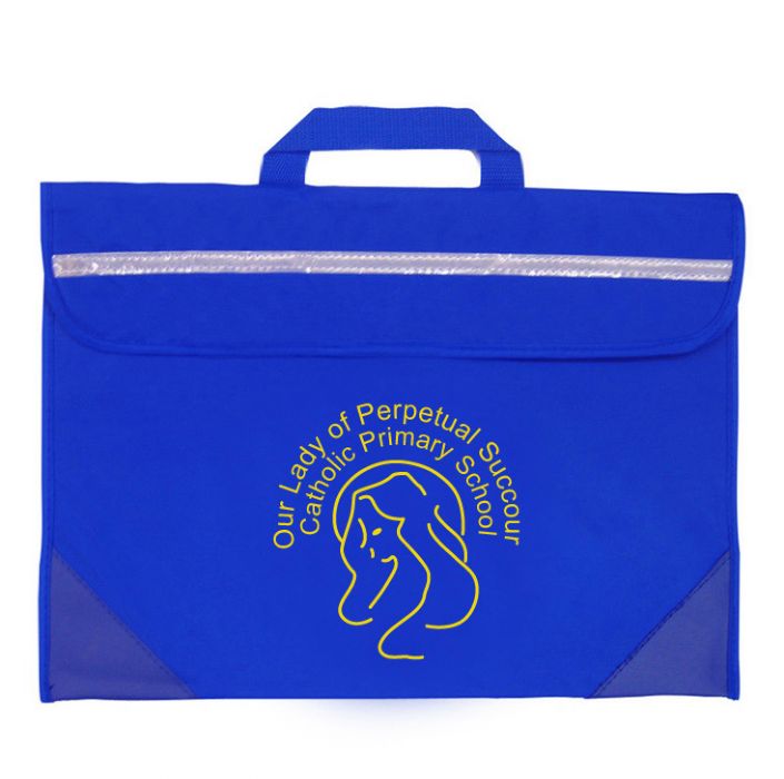 Duo Book Bag in a strong water resistant material with PVL lining. Features include a full length reflector strip, name card holder on the back, secure velcro fastening and reinforced PVC corners.