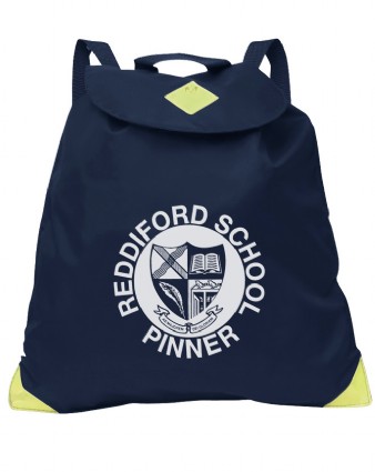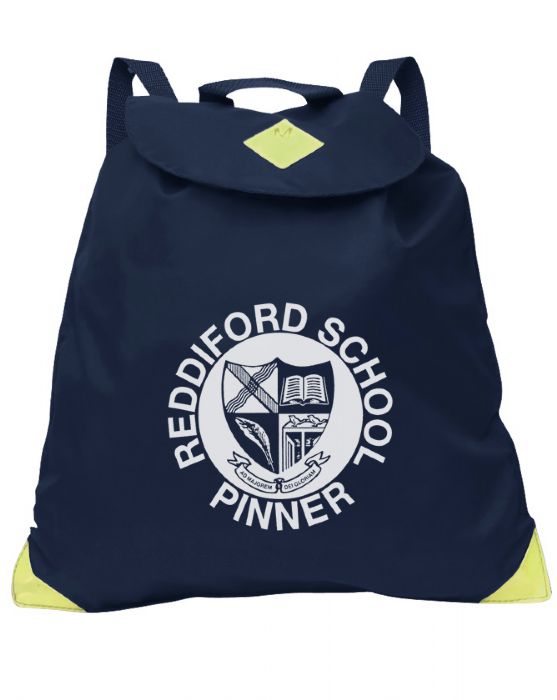 Infant Backpack in a strong water resistant material, features include secure easy to open velcro fasting, strong drawcord, safety reflectors, internal pocket, name card holder on the back and adjustable back straps.