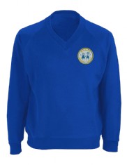Boys: Grey trousers, white shirt, tie, royal blue sweatshirt or jumper with logo, grey socks and black shoes.