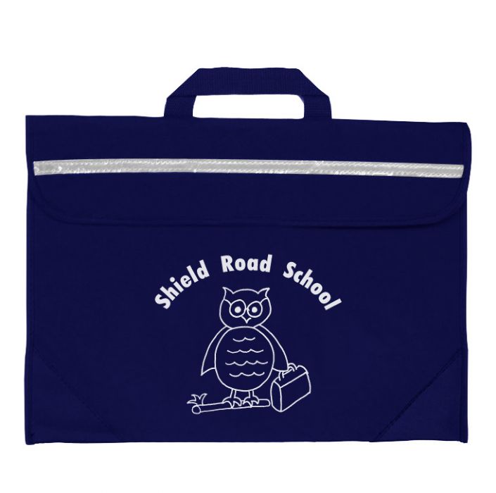 Duo Book Bag in a strong water resistant material with PVL lining. Features include a full length reflector strip, name card holder on the back, secure velcro fastening and reinforced PVC corners.