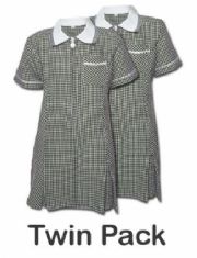 Green and white striped or checked school dress