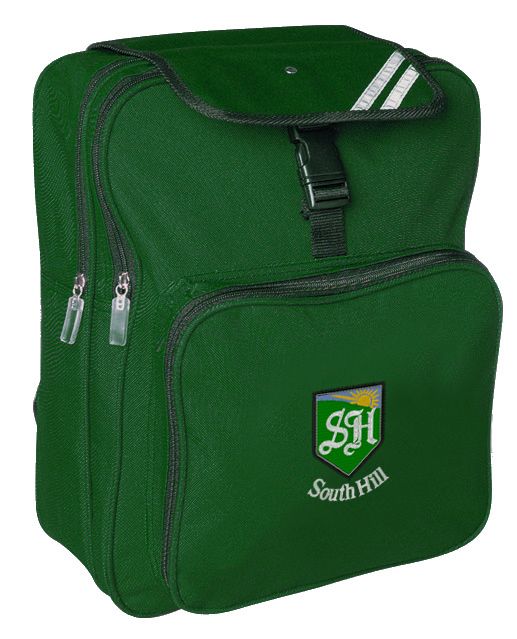 Practical Junior School Backpack with front pocket containing pen holder ad detachable pencil case, two zipped compartments, shoulder straps have Blazer Buddy lining to avoid piling of garment and special rubber feet protectors. Dimensions 16 x 12 x 7 inches