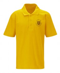 Gold polo shirt with school logo