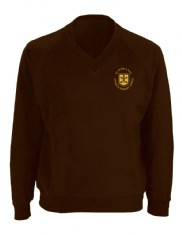 Girls and Boys Brown v necked sweatshirt with school logo