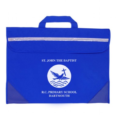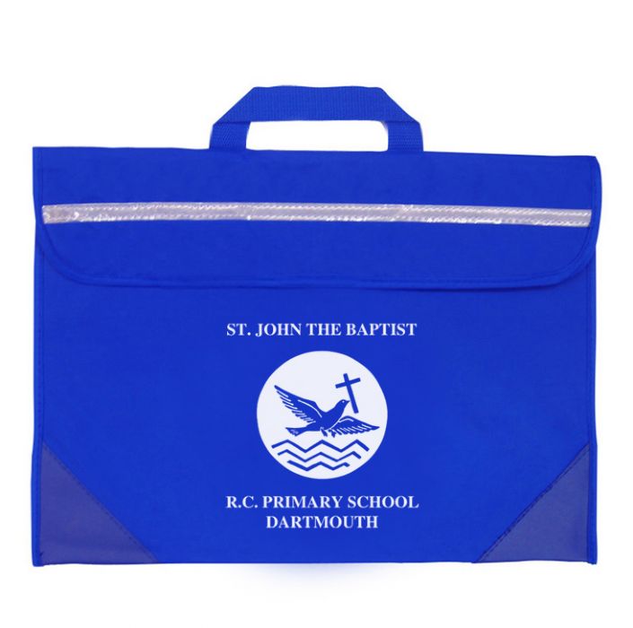 Duo Book Bag in a strong water resistant material with PVL lining. Features include a full length reflector strip, name card holder on the back, secure velcro fastening and reinforced PVC corners.