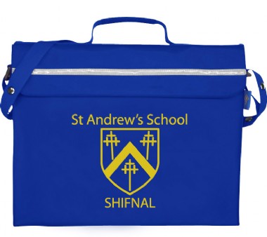 Primo Book Bag in a strong water resistant material with PVC lining, maximum capacity with side and bottom gussets, internal pencil pocket, shoulder strap, name card holder on the top, full length reflector strip and secure velcro fastening.
