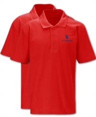 Red polo shirt with school logo