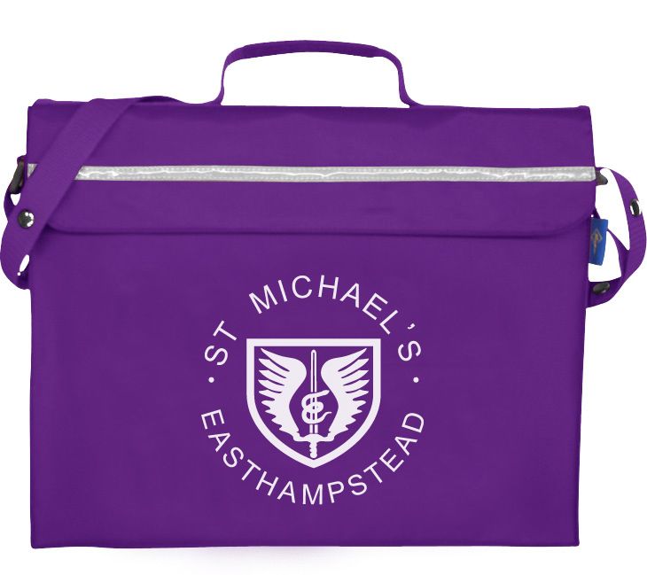 Primo Book Bag in a strong water resistant material with PVC lining, maximum capacity with side and bottom gussets, internal pencil pocket, shoulder strap, name card holder on the top, full length reflector strip and secure velcro fastening.