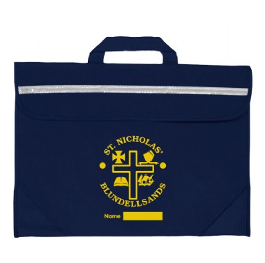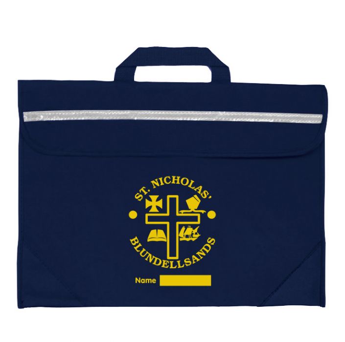 Duo Book Bag in a strong water resistant material with PVL lining. Features include a full length reflector strip, name card holder on the back, secure velcro fastening and reinforced PVC corners.