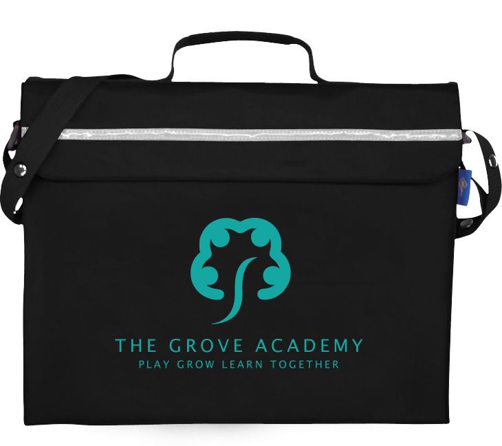 Primo Book Bag in a strong water resistant material with PVC lining, maximum capacity with side and bottom gussets, internal pencil pocket, shoulder strap, name card holder on the top, full length reflector strip and secure velcro fastening.