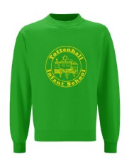 Green Sweatshirt and yellow book bag (available from School)