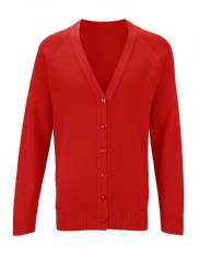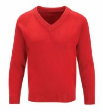Red cardigan or pullover (V-neck)