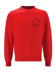 Red sweatshirt with school logo